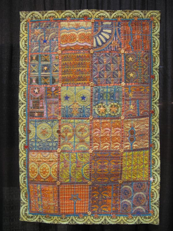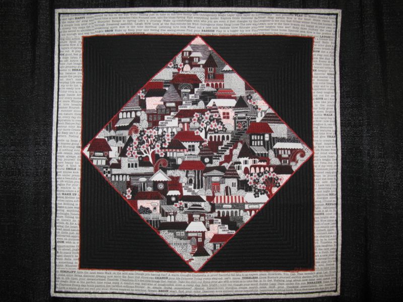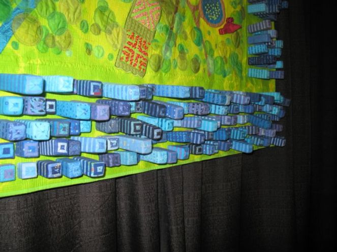 The little pin cushion hangs on my pin wall with giant corsage pins. I am not a pin-cushion person, although I have many beautiful ones given to me as gifts. This little one holds these pins which are helpful for holding large swaths of cloth, like when you are smoothing a quilt backing onto a quilt top already on the wall to check for size. Or for holding necklaces, notices for doctor’s visits, etc. I put all sorts of stuff along the edges of my pin wall.