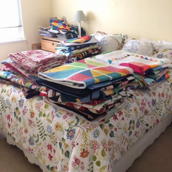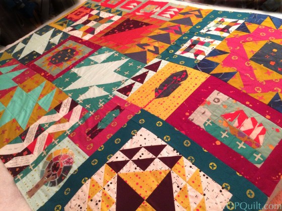Then I decided to quilt my own, trying out different ideas as explained in an earlier post. But thanks to my quilt holder Dave, I can now reveal the fully quilted version to the world, as well as deliver some great news about this quilt.