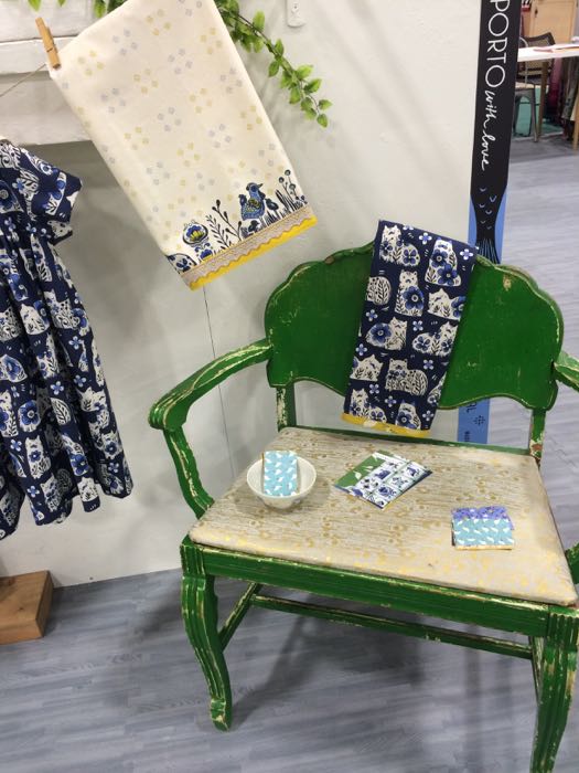 I bought two sets of purse handles, as they were selling about 75% cheaper than what I can buy in the states, plus the above fabrics. The French fabrics on the lower right are coated, so they’ll make a nice lunch sack. I found fabrics from Japan, France, Scandinavia, and some bits of American fabrics, but not much and all the prices were reasonable.