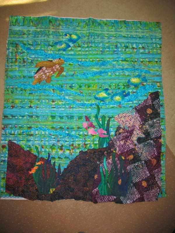 And the back, with its four colors of toile. Make that five if you count the hanging sleeve at the very top.