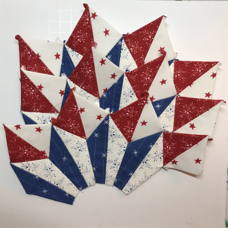 I finished the red, white and blue version (top only) of Shine: The Circle Quilt and I did it by the time of the Inauguration of our new President, my goal.