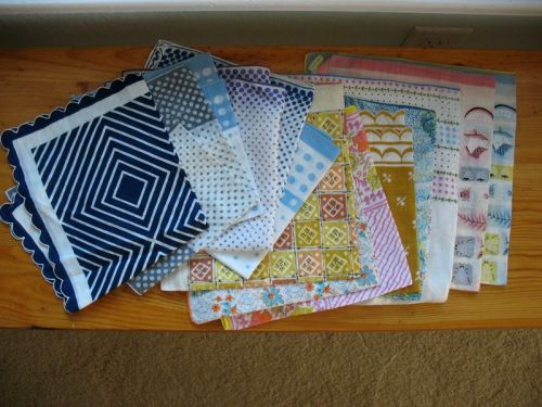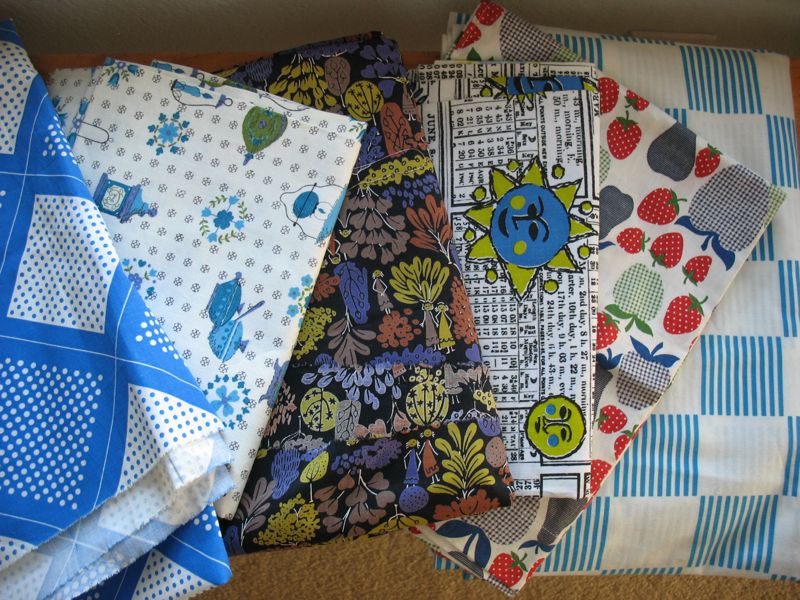 And on the second shift of visiting family (the OTHER side of the family from the blue shirts), I slipped over to the next door neighbor’s estate sale, where I scored on some vintage fabrics . . .
