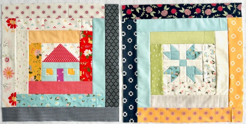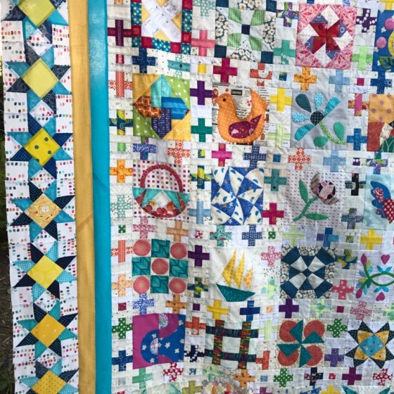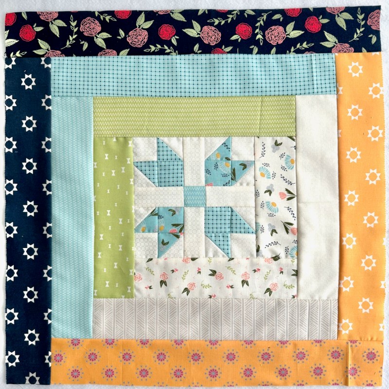 It’s tempting to just use all one color family in the blocks, but I finally busted out on that last one with the blue corners.
