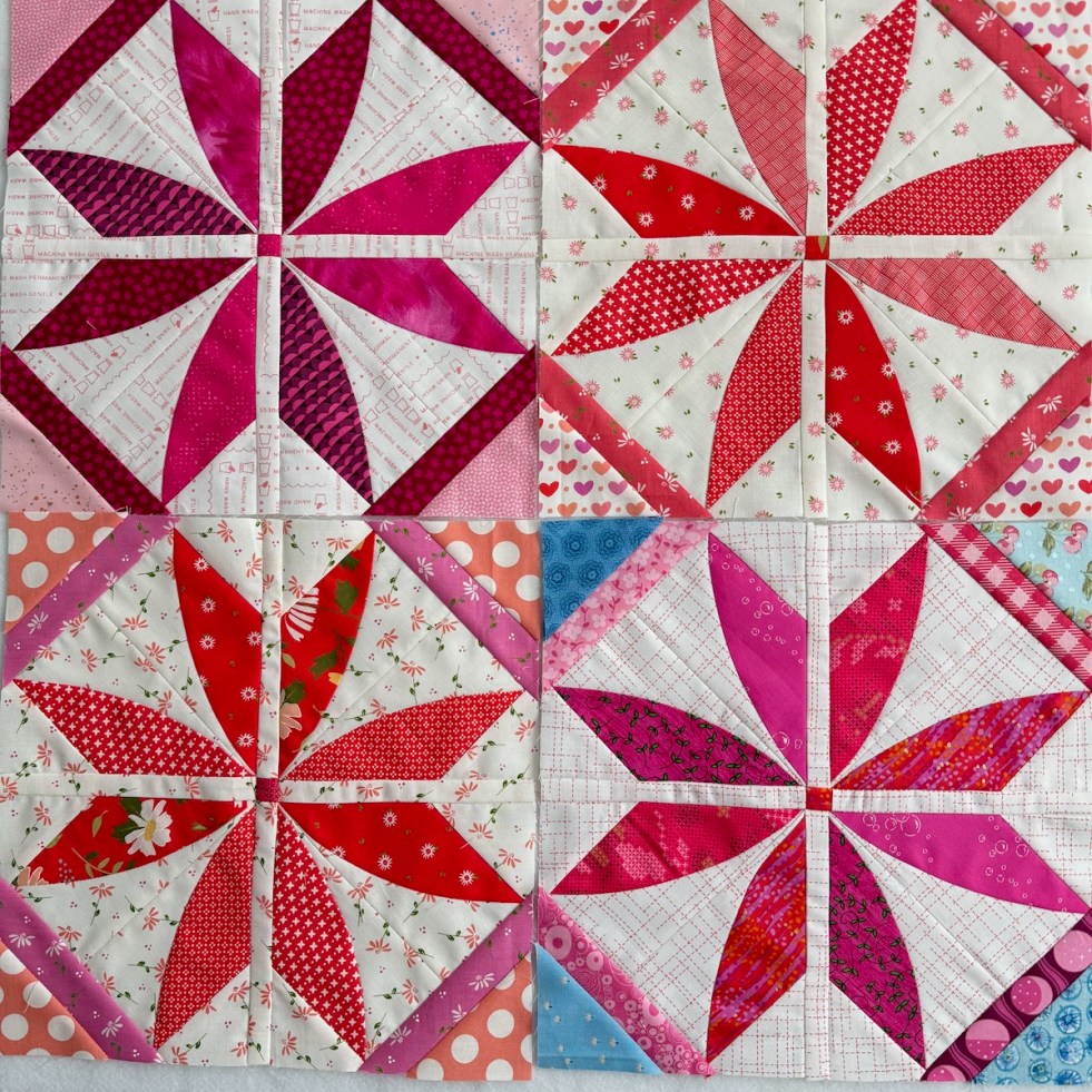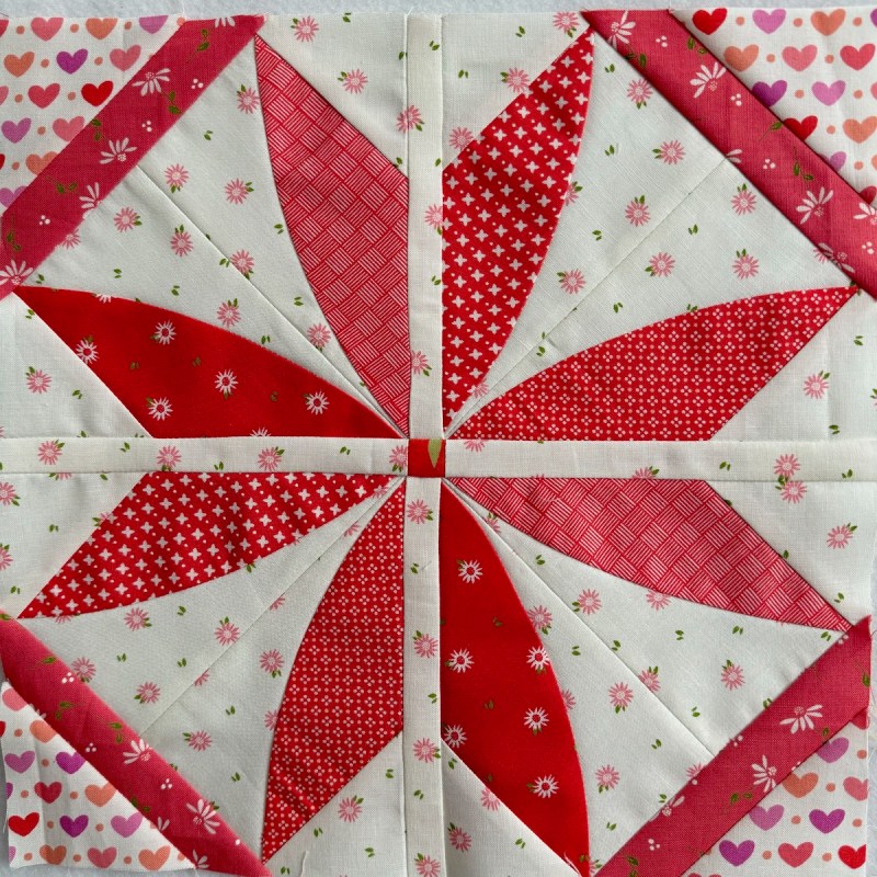 I finished up Sherri’s February Block of the Month (BOM) and it has this cute little ribbon star in the middle. If you need calming down from the dumpster fire in your life (not naming names, here), put on one of Sherri’s videos and you will end up smiling and believing that you can Conquer All. She’s like that in real life, too.