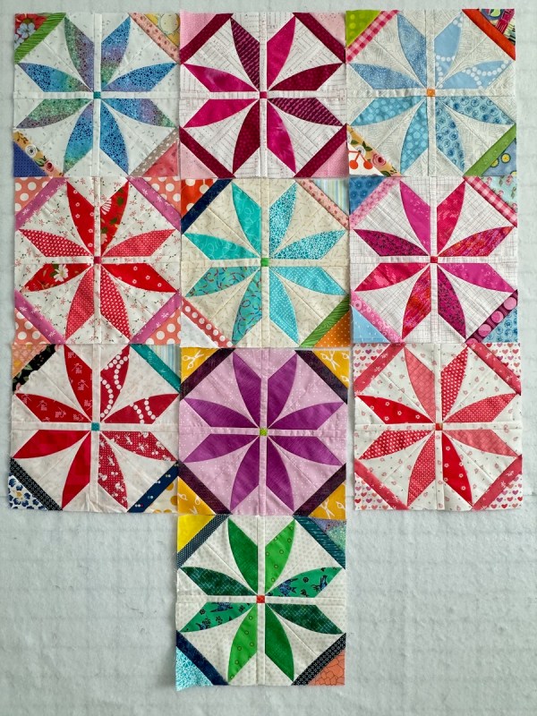 Here’s the family, so far. I could go green in March…but then there are also a TON of blues in my stash closet. One can never have too many blue blocks in my world, so we’ll see.