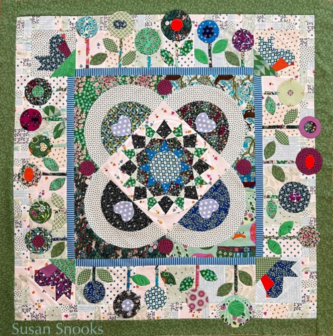 I have a garden in my heart, planted with small sayings, memories, houses I’ve lived in, moments with family. When weeds spring up — a sad day, hurt or sorrow — a little tilling sets it right, along with a good deed, a little quilting. So for the Spring of 2022, I did a little Quilt-A-Long with this garden. We worked a bit at a time and helped to banish the doldrums of the past winter.