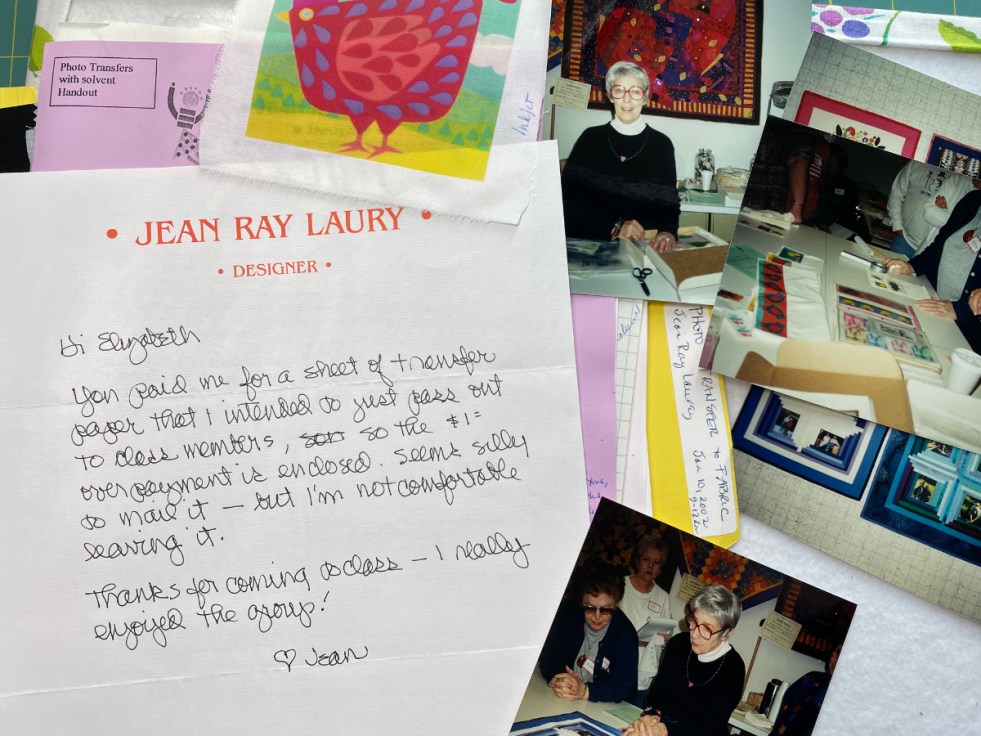 I found file folders for the Joen Wolfrom class I mentioned in the last post, as well as a few others, but the file that amazed me most of all was the one that held the papers from a class with Jean Ray Laury, the grandmother of the graphic arts quilts (in my mind).