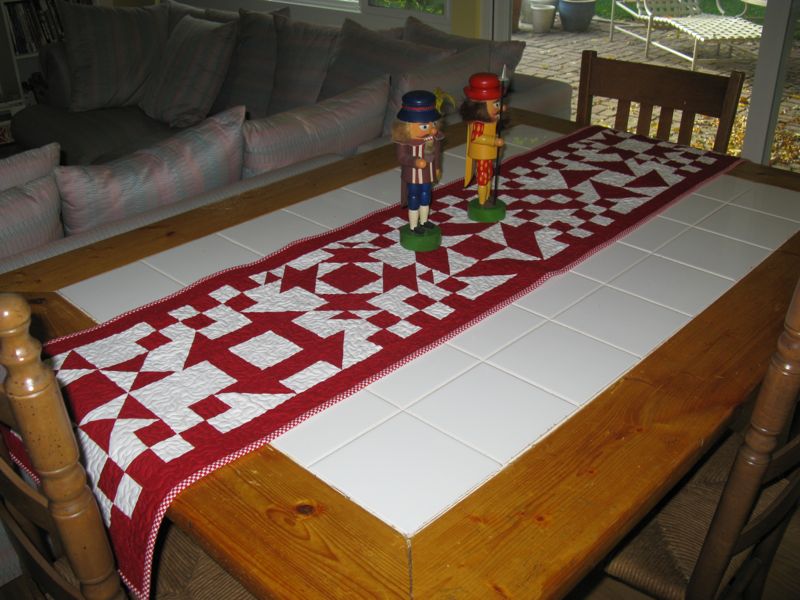 Red-White Table Runner, skinny quilt #92 • 2011 • Online Friends from all over the world