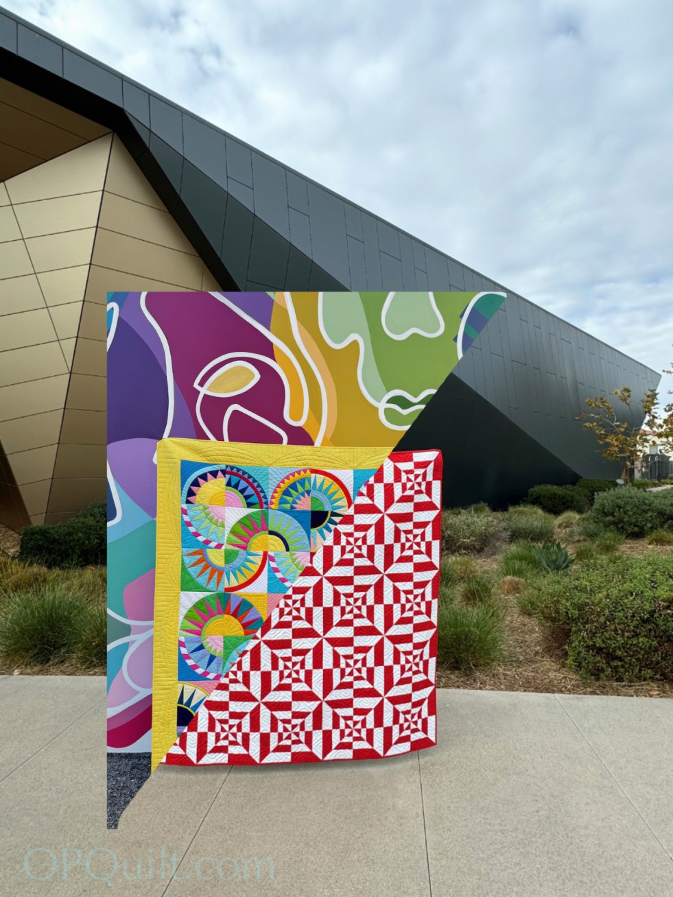 Speaking of roads, did I mention I had two quilts accepted to next week’s 2026 Road to California quilt show? The quilts’ split portrait is above, in front of a local modern building I love.