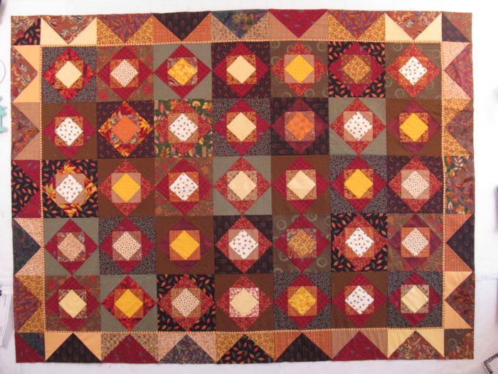But wait, Denise. I’d like to stay here awhile, and enjoy the recent fall color all squeezed into this quilt: