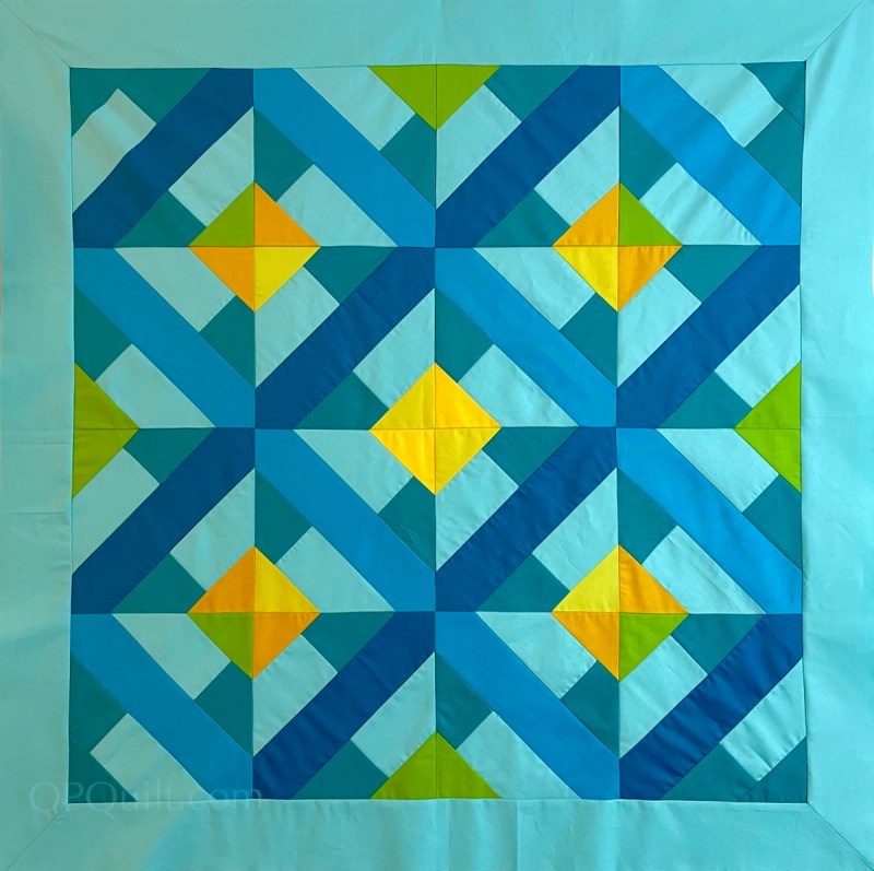 The Blue and Cheddar quilt is finished, bound, and sent off to the recipient. If it were to have a name and a label, I would call it this: