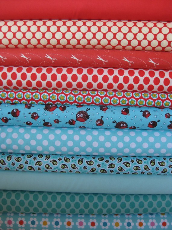 On a related note, a friend bought two of these bundles to make a quilt for her granddaughters. I couldn’t get them out of my mind. So when Fabricworm had a little Black Friday sale, I bought a stack, too. Do I know what I’m going to do with them? No–but who could resist this luscious stack of turquoise and red/oranges? I just noticed that they are sold out of them, so I’m hoping that I got one of the last ones.