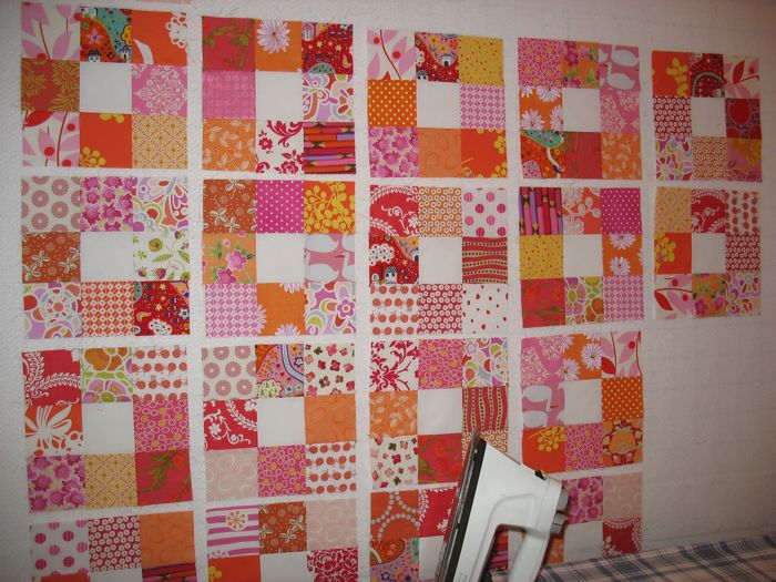 I made a quilt like this and gave it away, but thought I’d like one too. I started re-collecting a few months ago, and now have enough for two quilts! Doesn’t it always go like that? At the rate I’m going this month, I’ll have it done by summer, but it is fun to look at such an explosion of color when I get bored with my grading.