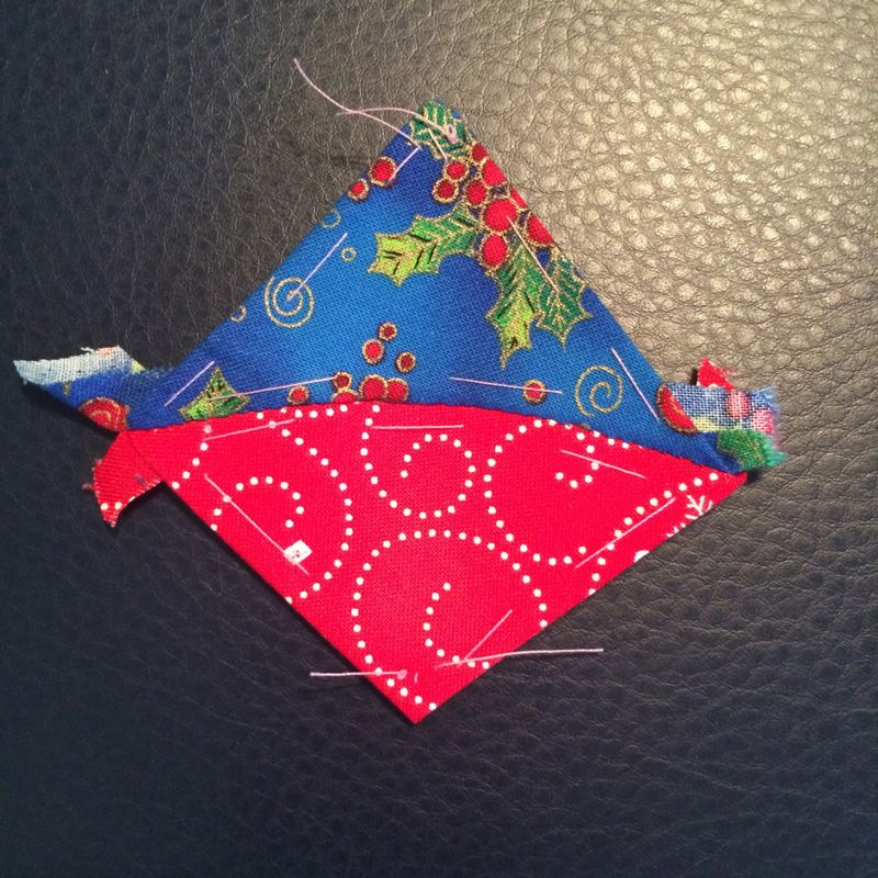 WARNING: Prewash your reds!!! I did them once with Dye Catcher Sheets. I should have done it three times, so my tree skirt suffered. We still use the tree skirt, as the discoloration is up near the binding in the center circle, but I wish I’d washed them more than once. Now we call it Christmas Tree Skirt at Sunset.