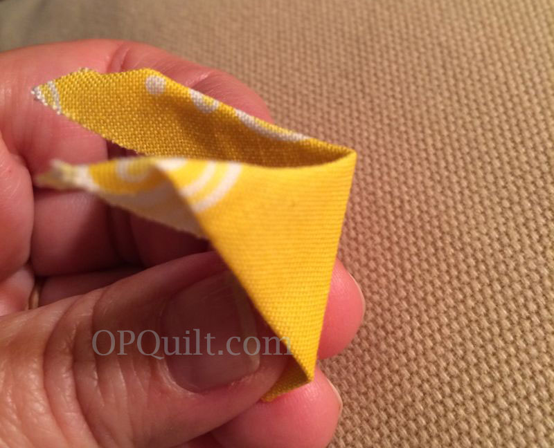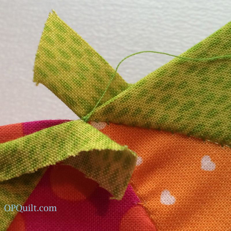 Then stitch down the loose yellow point. Repeat with the other two pairs.