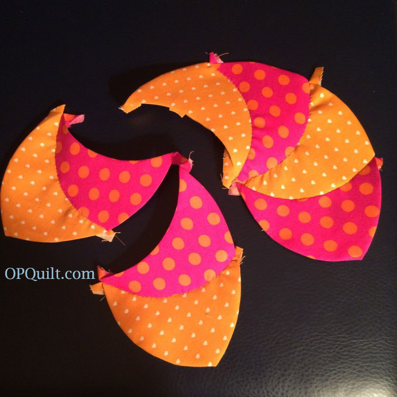 Okay, back to the sewing. To place the points on accurately, pinch to find the center of the curved edge.