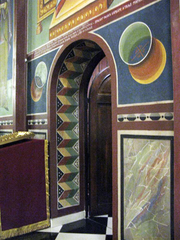 I hope you have enjoyed this series. It all started when I wanted something to sew by hand at night to relax, but was tired of all the straight edges of hexagons and such. Just after I started, we visited an ornately painted church in Slovenia, which inspired many of the circle blocks. If you are sewing them, please send me a note by way of comment, or share a photo with me by way of email. I can’t wait to see your creations!