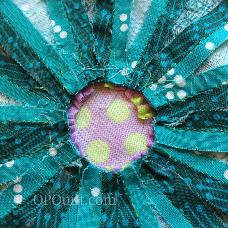 Don’t put it on the background just yet. First appliqué the center circle, as in Circle Block #1.