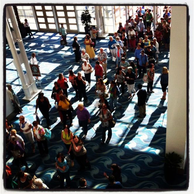 I left my town at 6 a.m. on Thursday morning, headed through the Los Angeles traffic to Long Beach, arriving there around 8:15 a.m. I left my car at the hotel, along with my luggage, and their shuttle gave me a ride over to the Long Beach Convention Center. I stayed at the Hilton, only about a 10-minute walk, but there are three hotels that are closer if that’s too far.