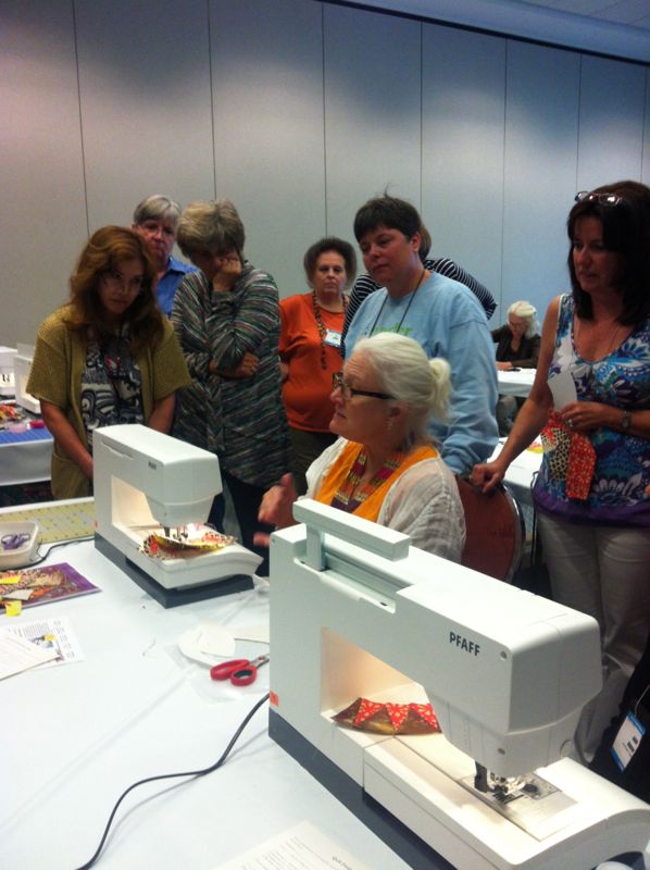 So I went over and found my friend Heather, of Superior Threads, and we walked around. It was pretty interesting being at the side of a vendor, as she greeted her fellow vendors. I told her was like those children’s stories that when after the children are tucked away and are asleep, all the toys come to life. She laughed, but agreed. I have to remember that I show up at quilt shows a few times a year, but all these people see each other about every month. She knew their stories, asked them about their vacations, commented on new products they had in their booths. When I’m there, I just see them as temporary brick-and-mortar shops where I can glean new quilt fabrics and buy the latest. But with her, I realize that we are all part of a large industry, all of us like pieces in a incredibly wonderful quilt.