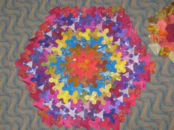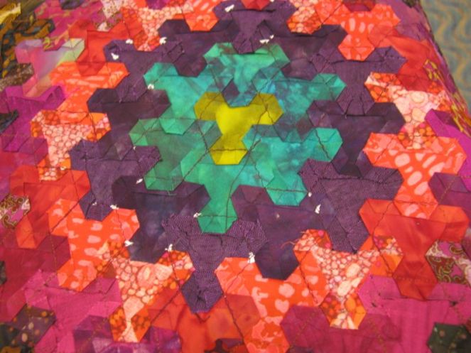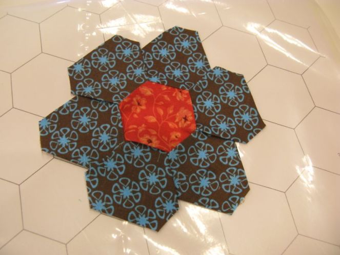 Hexies. One-inch hexies, sewn by machine. And that was the thrust of our class: Old Favorites, New Ways.