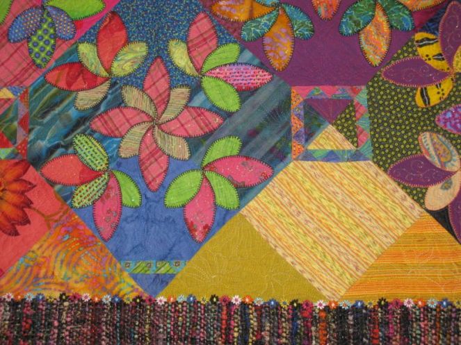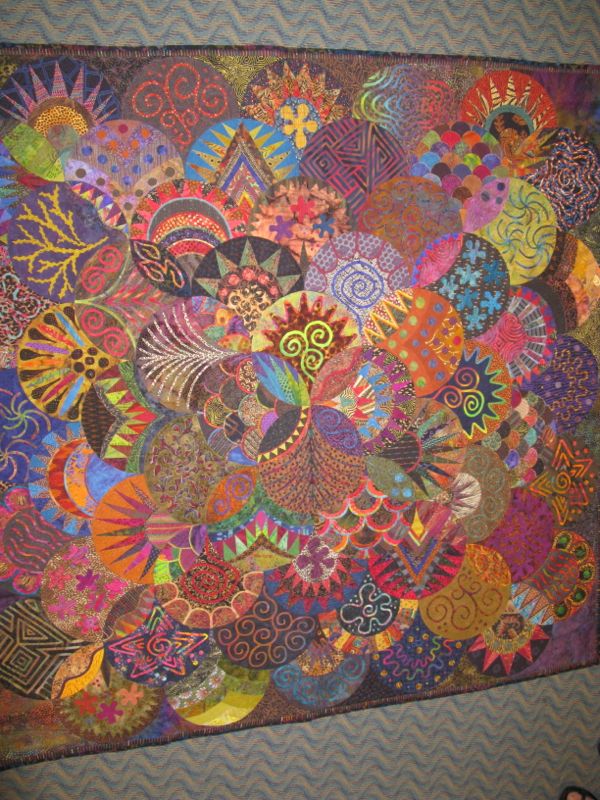Clamshell quilt. A lovely and invigorating riot of textures, design, colors.