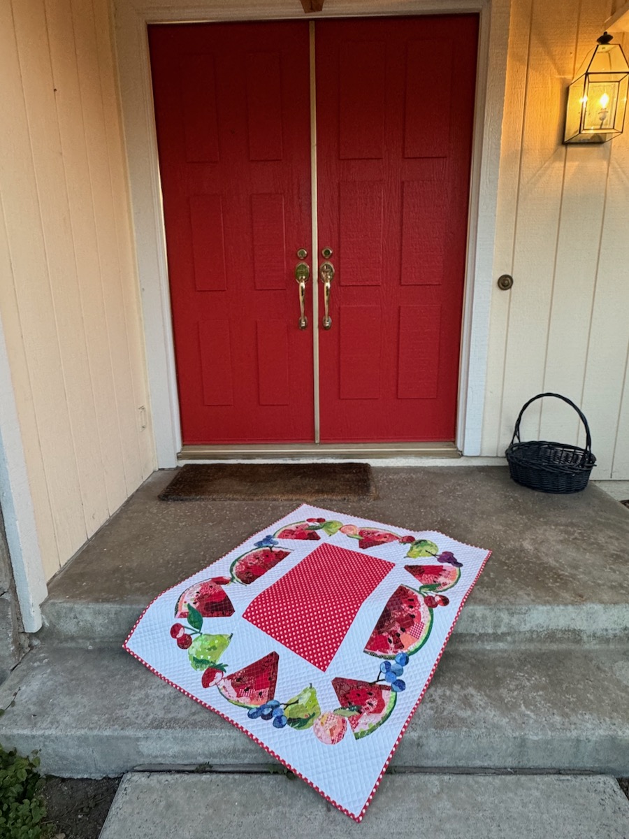 I tried three different centers, from white daisies on red (no), a double plaid (no), a beautiful radish print (no).