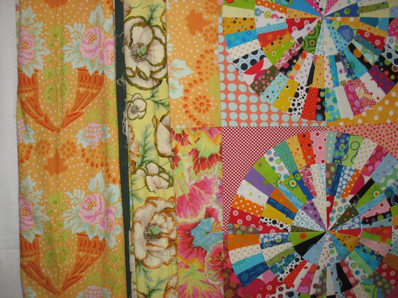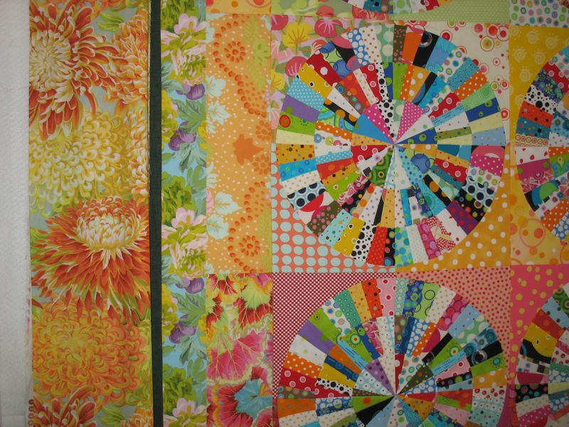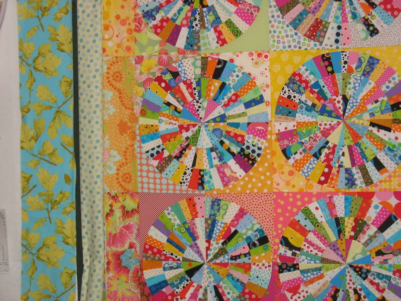 By studying others’ quilts, I discovered that the two fabrics on the outer borders need to harmonize. For the circles in the center to have the most impact, those outer borders need to be lighter in value. Now I just need to choose between the combinations above. Feel free to add in your two cents, knowing that I will go where this quilt leads me. Even if it is over a cliff.