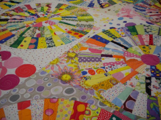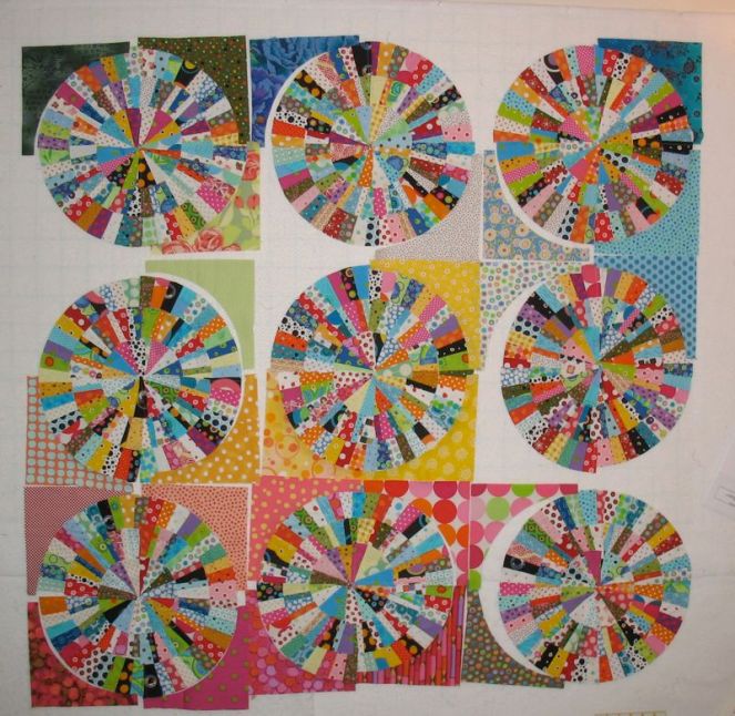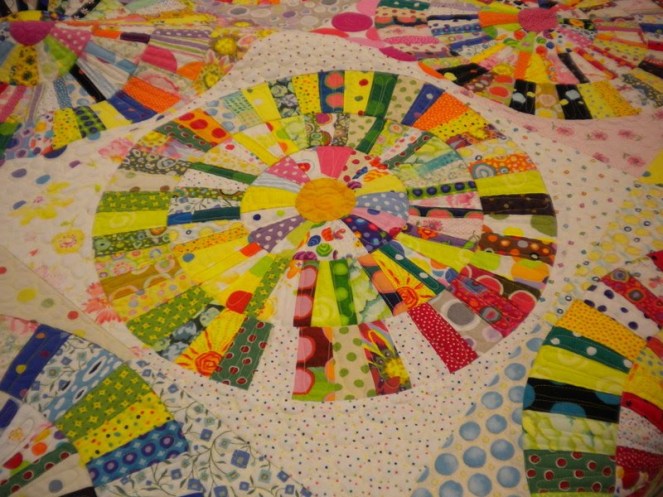 Our quilts are representative of where we are, both in our personal lives and our culture and our nation. This quilt might be called something else in another place or another time. I also wanted to play up the idea of circles, so I hyphenated the second word to suggest children’s play, perhaps of coming round to play with a friend, or twirling around on a sunny happy day.