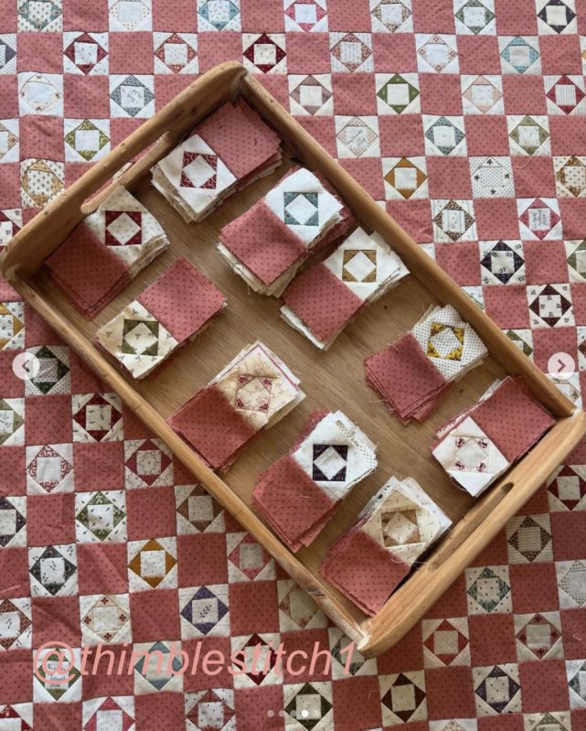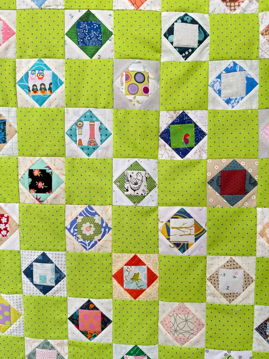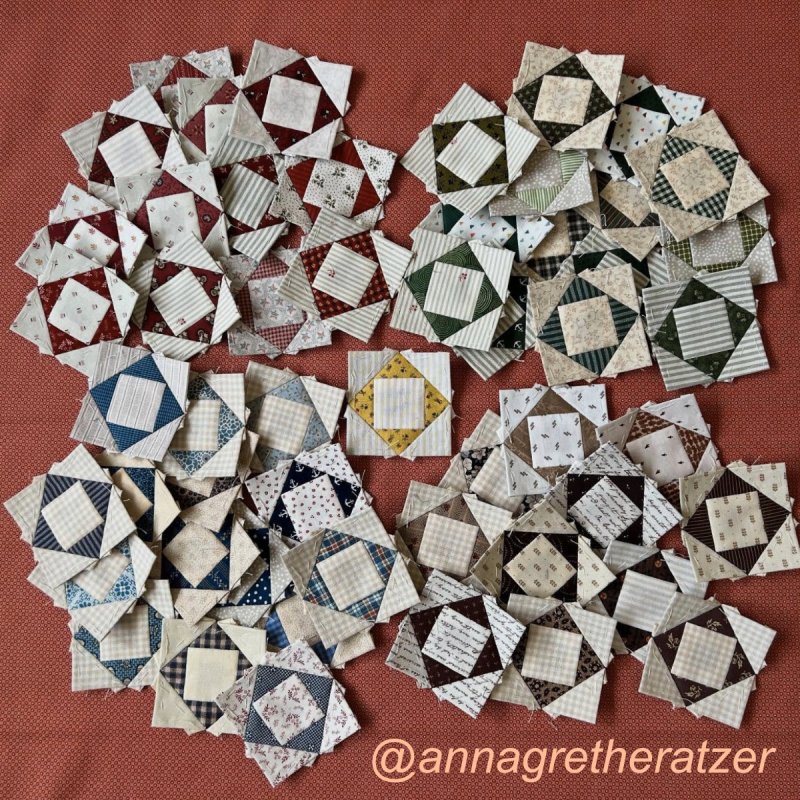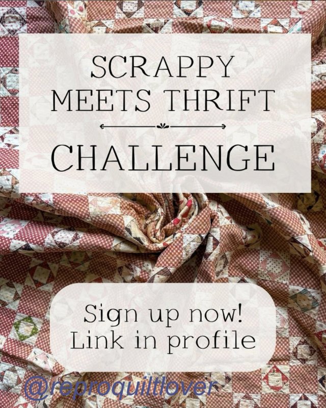 I delivered that one to the quilter this morning, too. I had started this #scrappythriftblockchallenge with Taryn of @reproquiltlover on Instagram. I wrote up a guide sheet and shared it (you can find it all on this post); the quilt begins with this blog post. [Note to all the Historians out there: first Instagram post was on March 31]