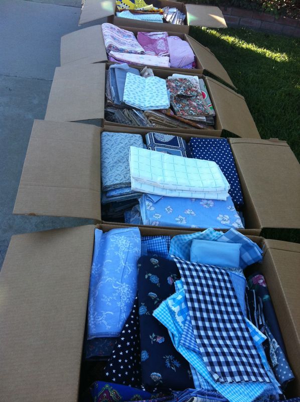 Box after box after box after box of fabric. Most had been purchased from a now-defunct dime store, and most were in pieces less than 1/2 yard. Some was substandard fabric–cheap gauzy stuff with garish prints. But a lot of it was worth looking through.