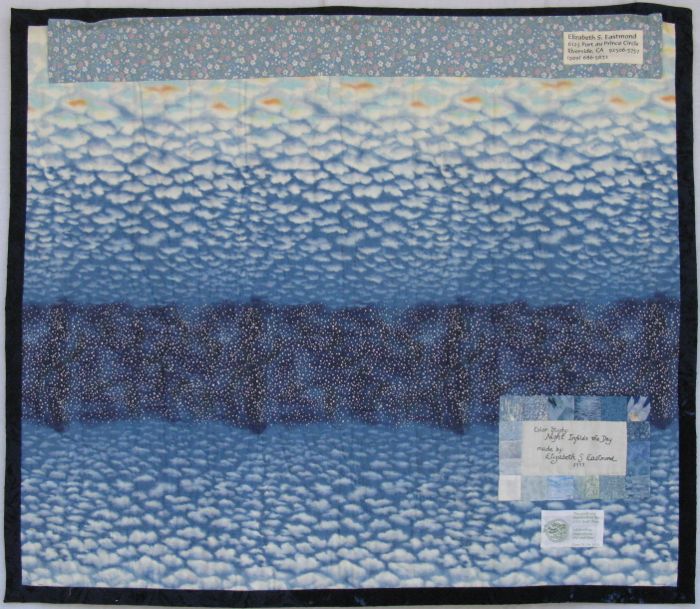Here’s my version: Color Study: Night Infolds the Day. My friend Leisa got us started on this adventure–I think it was her first quilt ever. We cut about a zillion little squares, and since that cool gridded fusible web hadn’t been invented yet, we pieced them all.