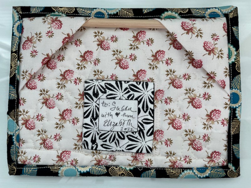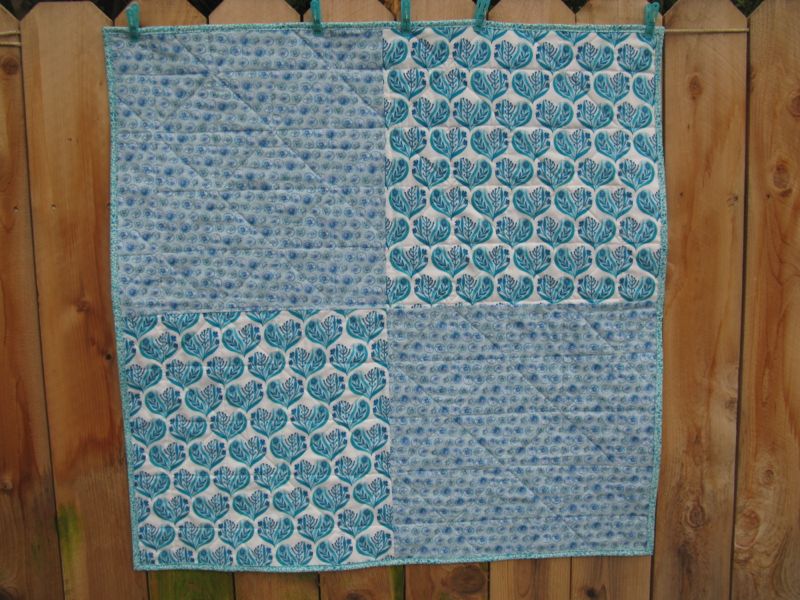 I trimmed it, bound it in some of my current favorite fabric, and sewed on a hand-written label.