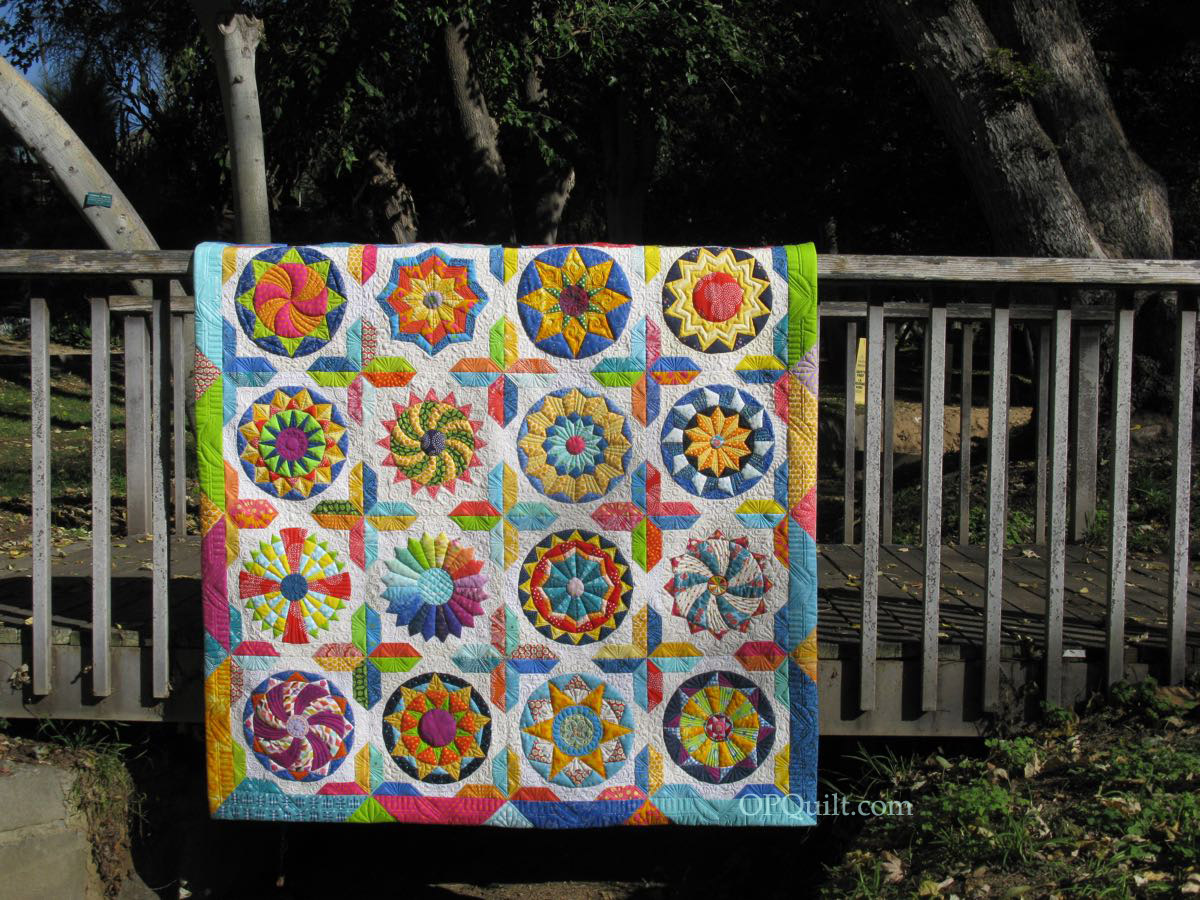 This quilt began its life in a quilt block I designed, which I call Semaphore. My friend Cindy saw that and made a version for a fabric manufacturer, who then put it on a world tour (see a photo at the end). I saw it again at Quilt Market in May 2016, and decided I wanted one myself, only larger.