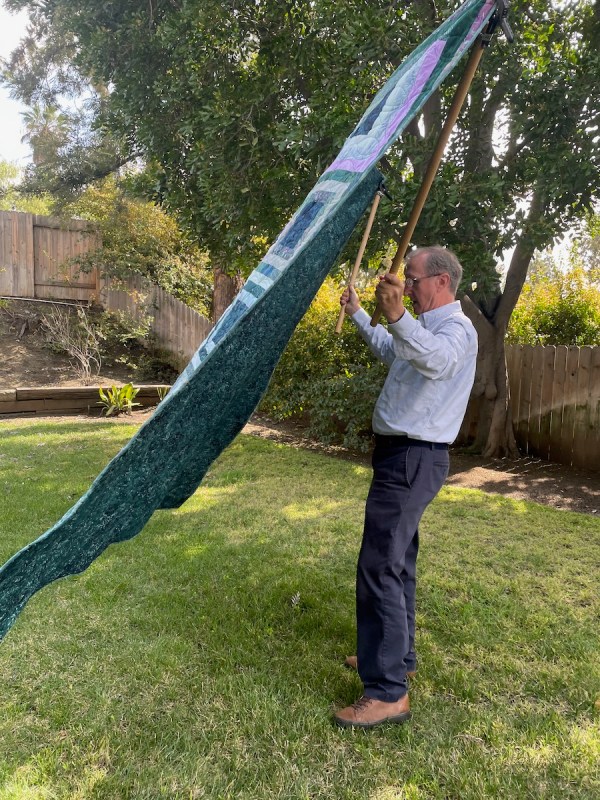 I mentioned that my friend Judy passed away mid-February and her memorial open house was March 17th. While cleaning out, her daughter found a completed batik quilt and backing and wondered if I could help her get it finished for her father? I contacted Jen of Sew-Mazing Quilting and she turned it around in no time flat. I got it bound (we took off the last border and used that for the binding — no one will ever miss it), and delivered it to them on March 16th.