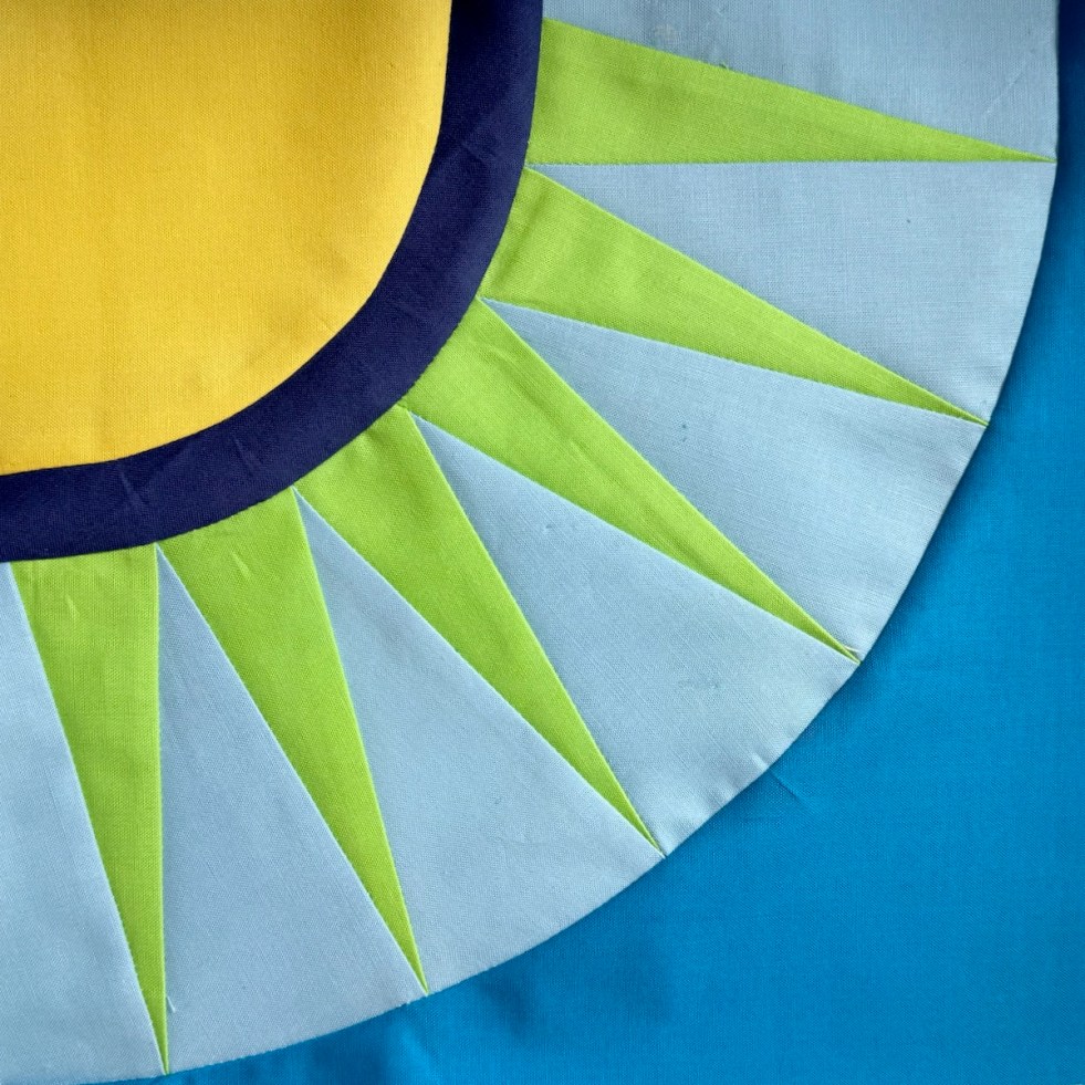 I’m getting ambidextrous, but I still prefer the pieced rays on top when I sew.