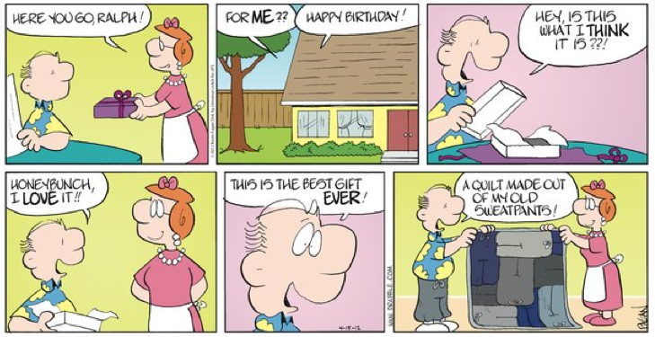 A quilt cartoon for you. I smiled when I saw the cartoonist’s version of a quilt.