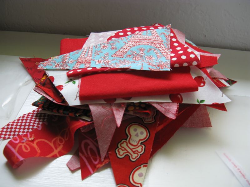 Anyone interested in my scraps from Scrappy Stars? They are not really big pieces–mostly 8″ or less in odd shapes, but they are a range of reds, with some coordinating accents. They’ll fit neatly into an envelope and I can mail them off to you. Let me know in the comments.