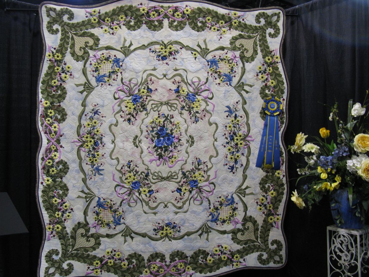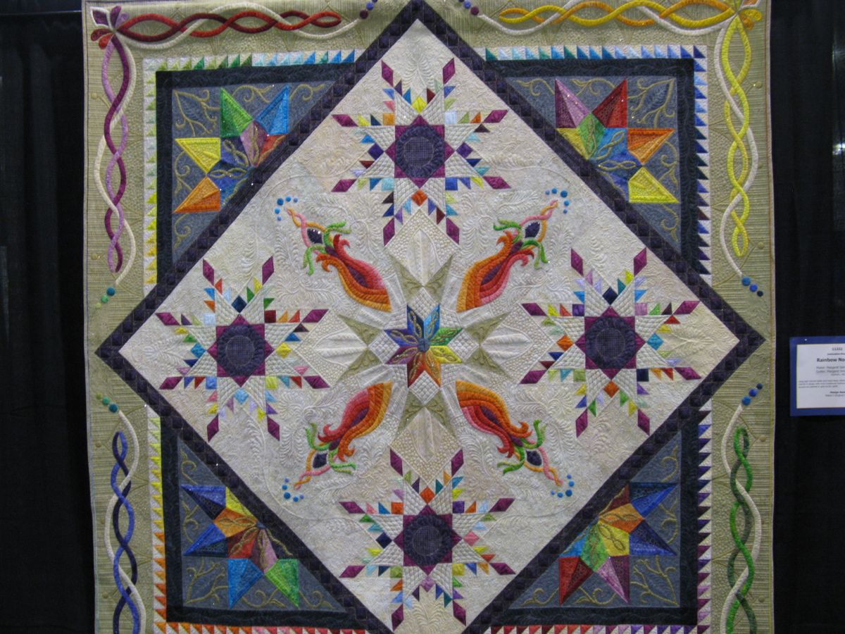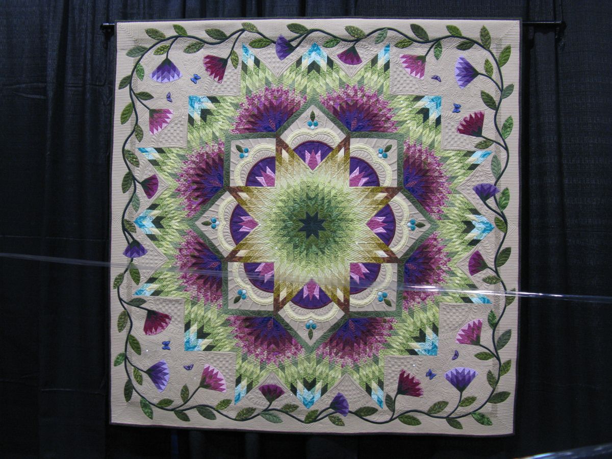 This is the BACK of the quilt, a sign proudly proclaiming “over 22,000” crystals. Would it surprise you to know that this quilter had a booth, and was selling crystals? Certainly a masterpiece of quilting and technically perfect with applied crystals, it represents the high point (or low point, depending on your point of view) of the Crystal/Sparkle/Bling phenomena. (I don’t know who the maker was because I was not impressed with the front, and I don’t like to give out the names of quilts I diss.) We now return you to our regularly scheduled quilt show.