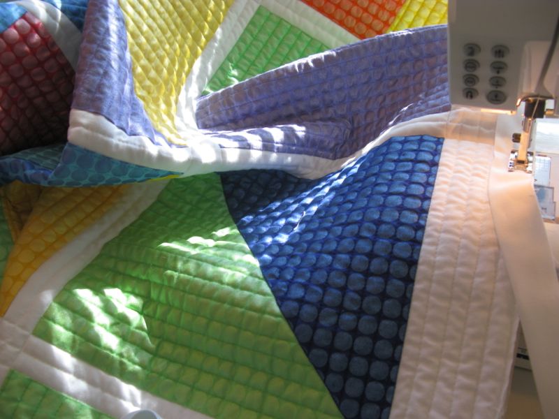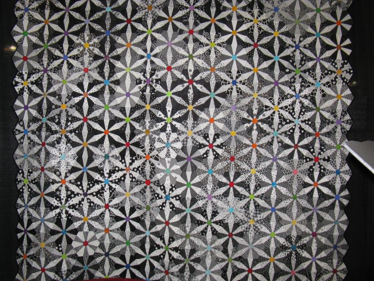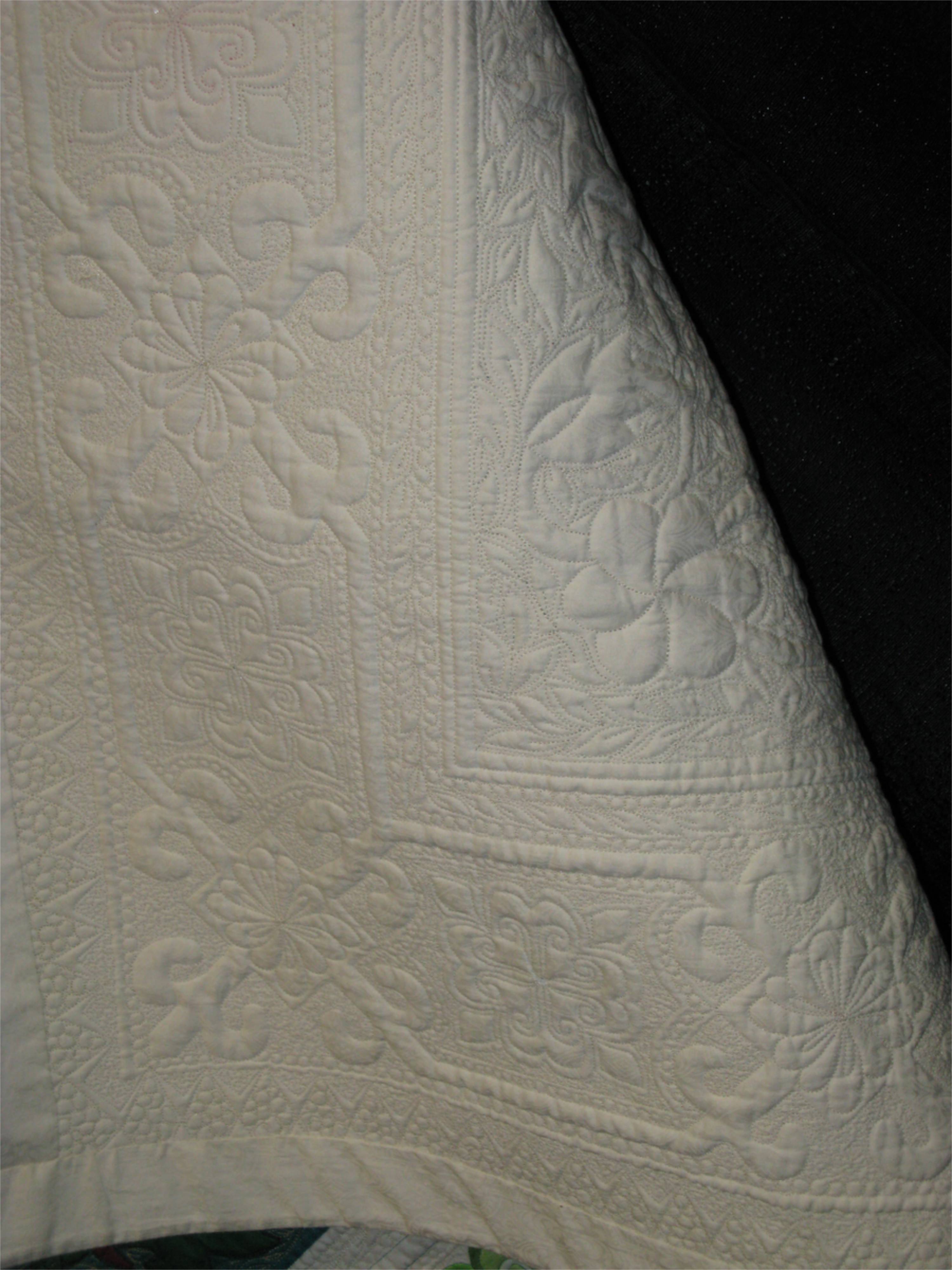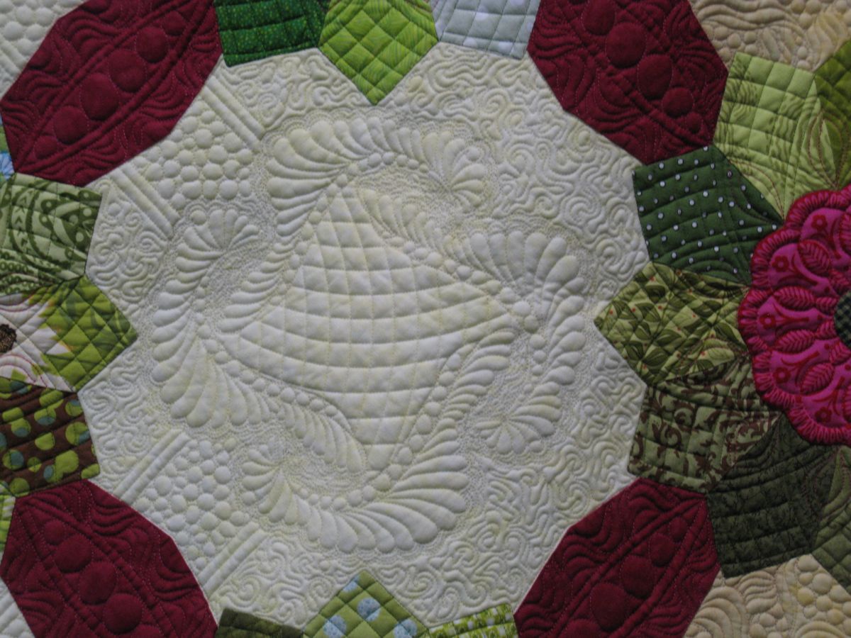 I love reading Linda’s blog, Flourishing Palms, as she is trying to adapt many of the longarm techniques to our DSM, applying some of their tricks and tips so that the resulting finish can have a similar technical excellence to them. I began to look for quilts that indicated that they’d used a DSM, chuckling a bit at the phrase “hand-guided longarm quilting,” although I know that this label is appropriate.