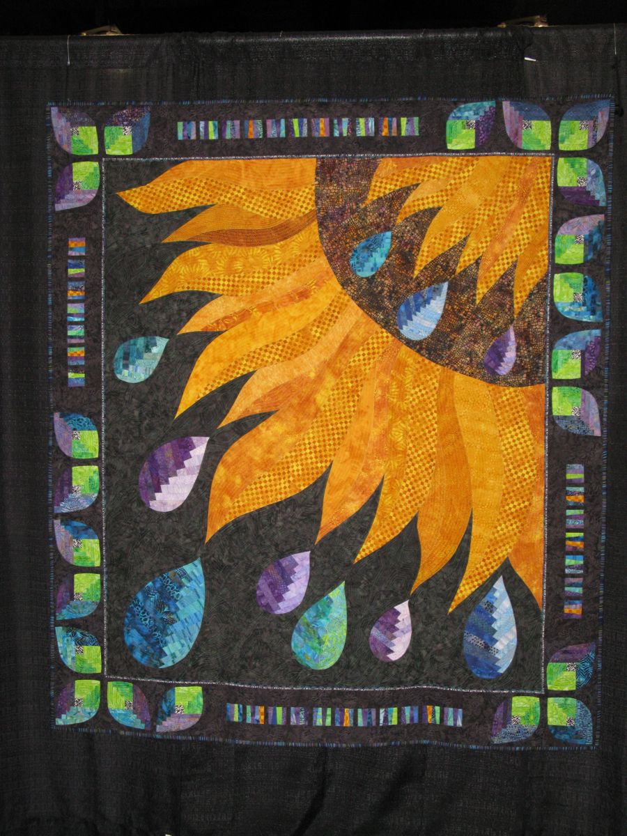 Sue Turnquist started her quilt Even the Sunflowers Wept shortly after her mother passed away in 2009, and she referred to it as her “mourning quilt.” I’ve seen a few of these in quilt shows over the years, and I like the idea that a quilt was made to help process grief and in remembrance. She writes “Even though the sunflowers weep, one cannot remain sad in their presence.”