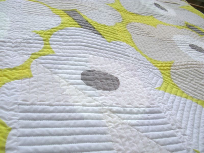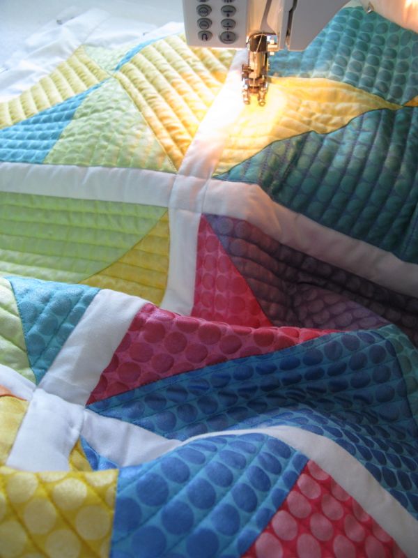 How do you like that fringe? Wilson is a clever quilter, and skilled with her quilting (below is the back):
