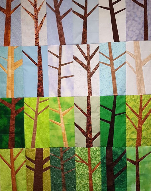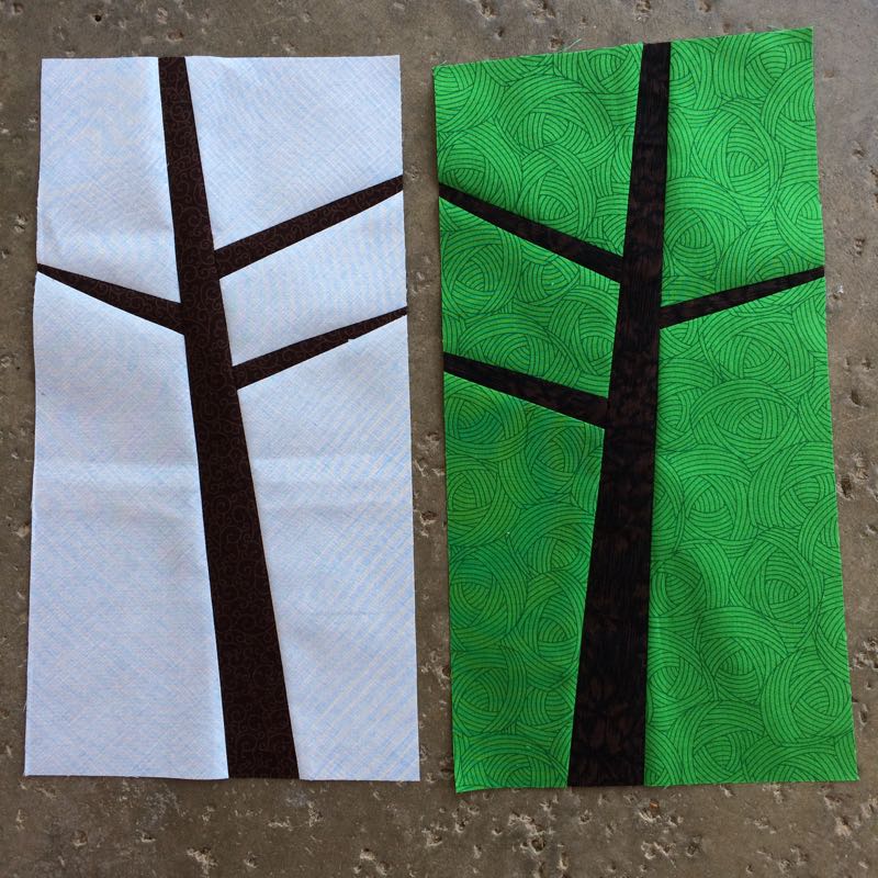 Fittingly for November, Nancy asked us to make these leafless trees, in sky color and green.