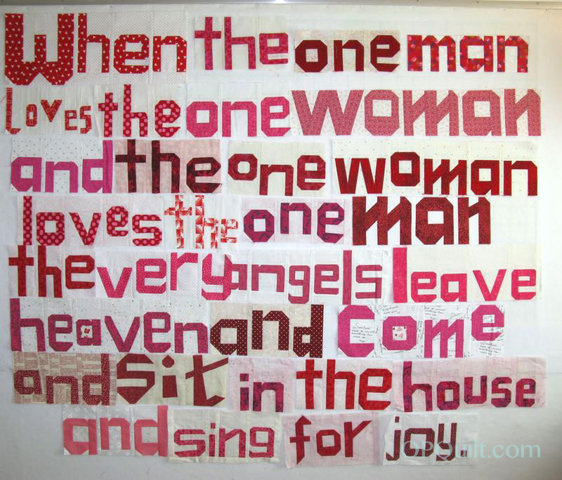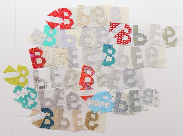 Here’s the composite (so far–people are still sending in their blocks). But while it’s stunning, and makes me want to make a quilt only out of AMH fabrics, some of the genius is in seeing how different the blocks are from the originals: