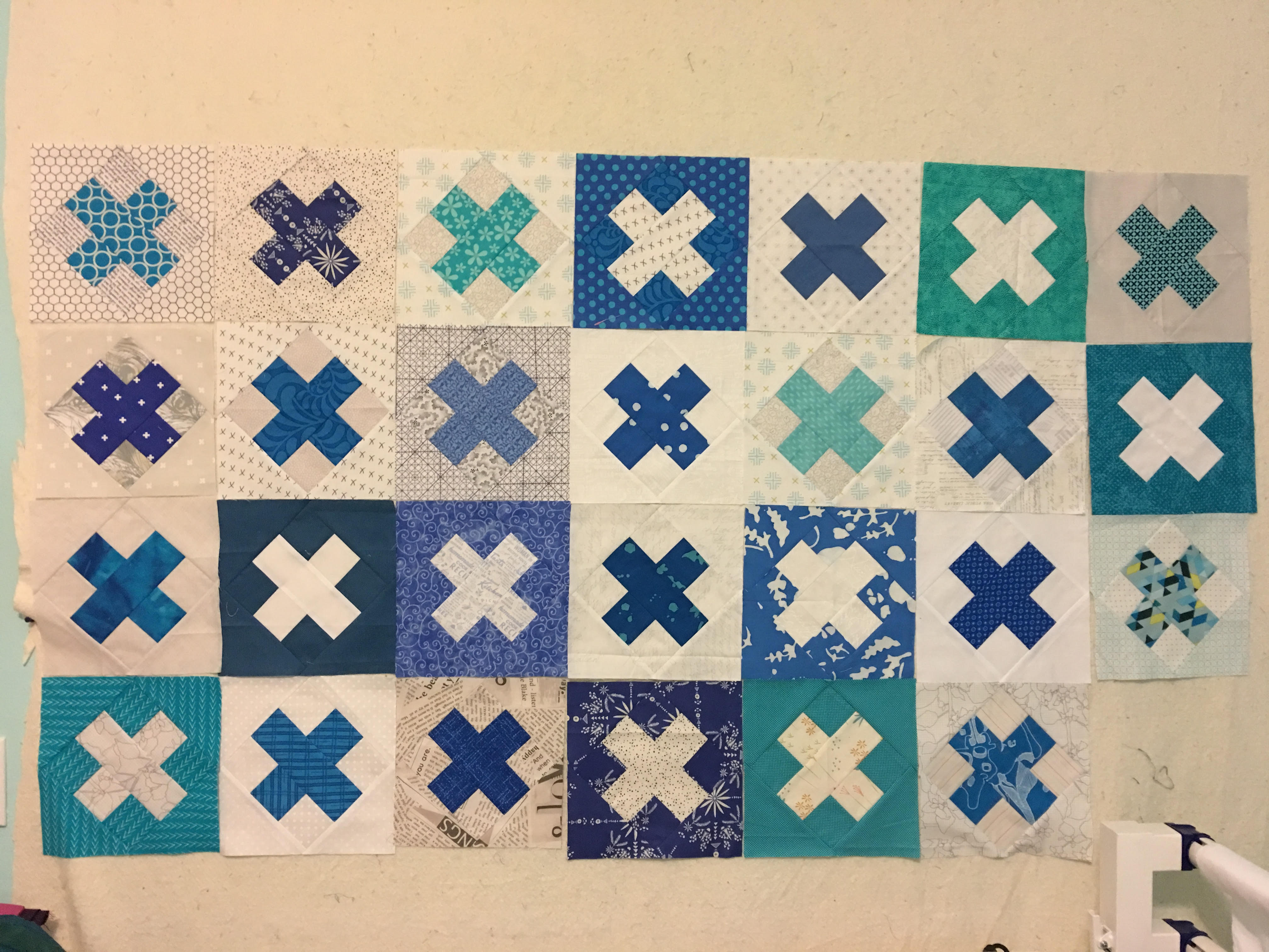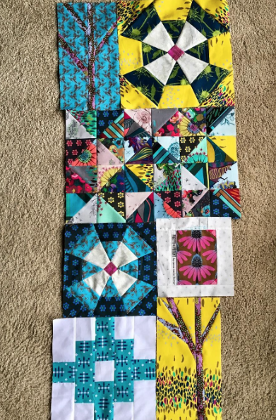 These are all the blocks, arranged up on her design wall. Those colors just pop!