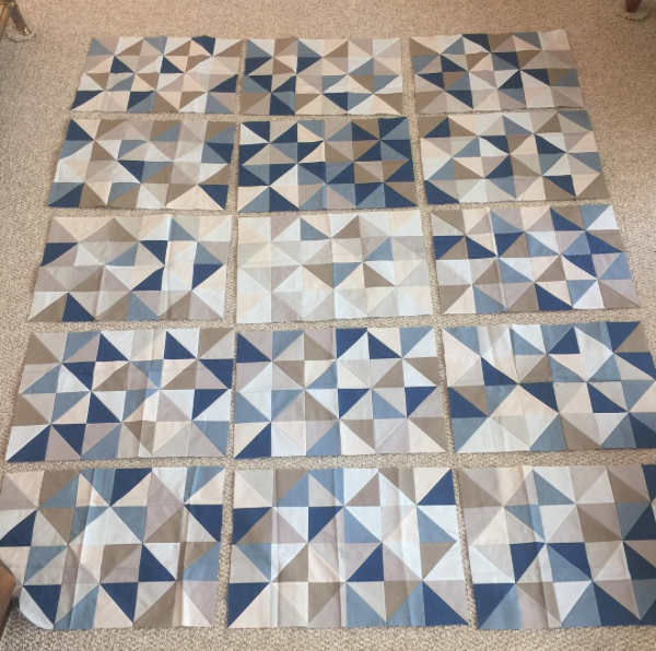 Once again, in May, we made churn dash blocks at the request of Carla F. but with a twist: they could be subdivided up inside the 12″ square requirement to add interest.