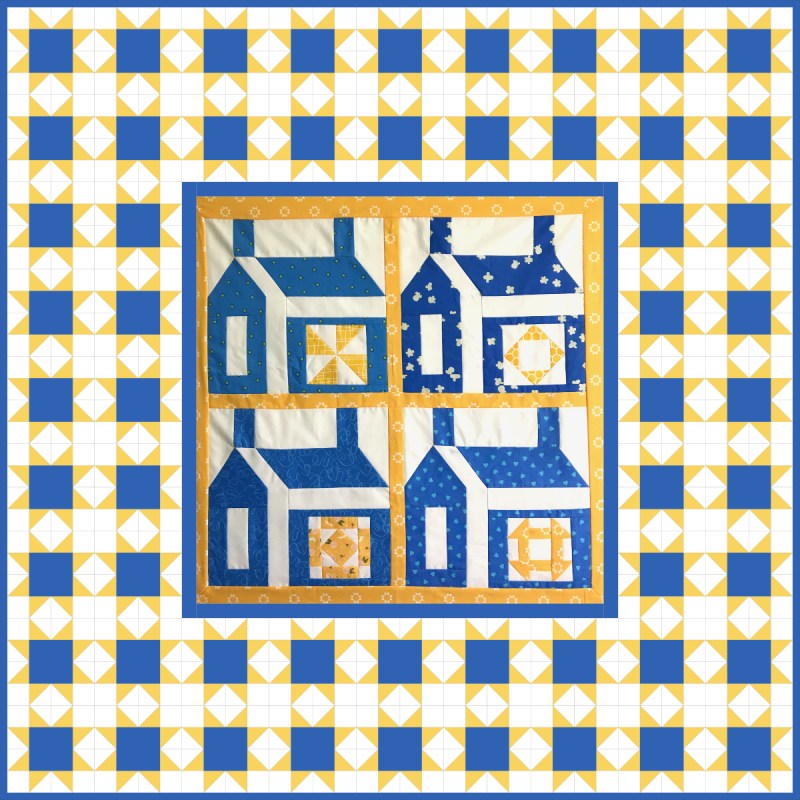I will say that the border was cut 5″ wide, then mitered on. I will probably update the pattern at some point in the future, complete with new photos, etc. If you have purchased it, you can re-download it. I’ll announce it on here.