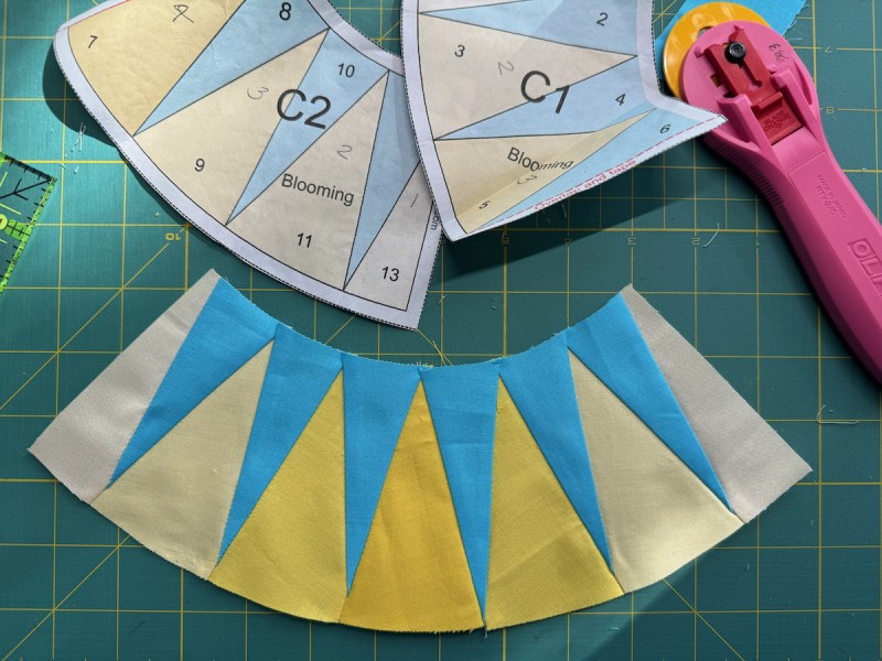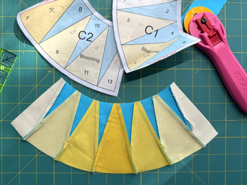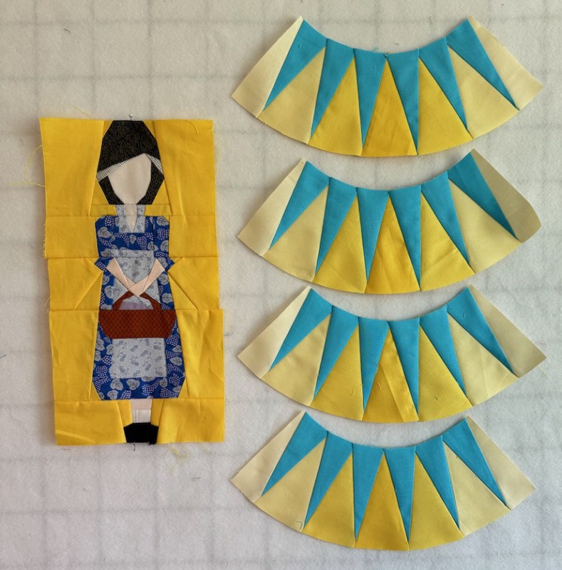 New York Beauties took a long time to get here: about three years. Started in 2022 from the spark of an idea, with a pillow of four New York Beauty blocks, it quickly morphed to quilt size, with a series of block tutorials. Then it moved from there to the new rage of freezer-paper piecing, tired as we were of ripping off papers from the back of our precision piecing.