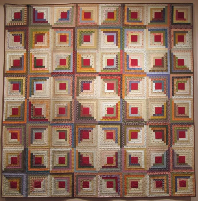 And to finish up this little quilt show, a Log Cabin quilt. Megan Christensen made the quilt, but didn’t identify the quilter. The title is A Good Use of Scraps, inspiring us all to get going on our scrap baskets!