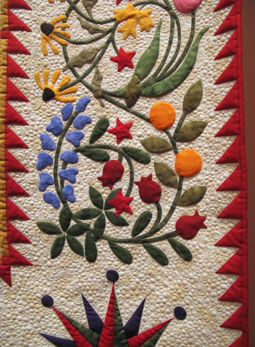 I snapped this one without noting who made or quilted it–it’s really beautiful and detailed.